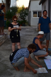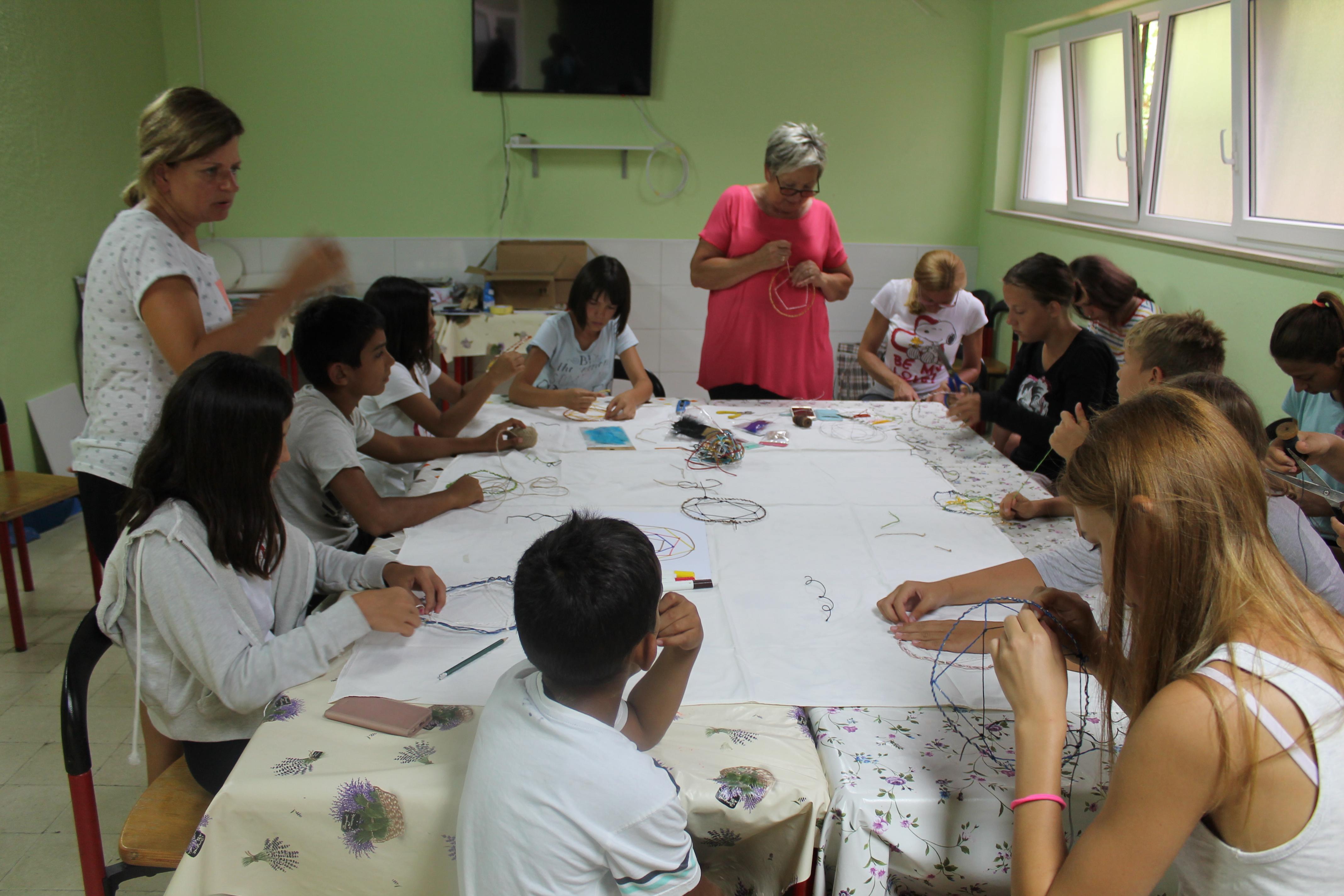 Kako se moglo čuti od voditelja Marka Šošića, kipari Ana Čolaković i Vjekoslav Filipović vodili su land-art radionicu slaganja kamenoga mozaika u plićaku na plaži s naglaskom na lokalnim materijalima, gdje se djeca kroz igru stvaralački izražavaju i uče odgovornom ponašanju prema prirodi i okolišu. Umjetnici Lidija Terzić i Željko Ašperger vodili su radionicu grataža gdje se unaprijed pripremljeni obojeni papir se struže oštrim predmetom, pri čemu nastaju zanimljivi oblici i kolorističke kombinacije. Akademski slikar-grafičar Želimir Fišić s djecom je provodio radionicu izrade plakata u tehnici kolaža i otpadnoga papira, a nastali plakat poslužio je i kao službeni plakat za izložbu. Akademska slikarica Žanna Erdelji vodila je radionicu izrade dream catchera. Ova rukotvorina, prema indijanskoj tradiciji, „hvata“ loše snove i donosi one dobre. Studentica modnog dizajna Tena Pilić vodila je radionicu „Moderni etno“ koristeći stare reciklirane materijale te zajedno s djecom kreirajući odjevne predmete. Radionici se priključio i dr. art. Goran Kujundžić koji je unio elemente ornamenta koji su aplicirani na uratke, a nastale kreacije djeca su nosila na modnoj reviji na otvorenju izložbe.