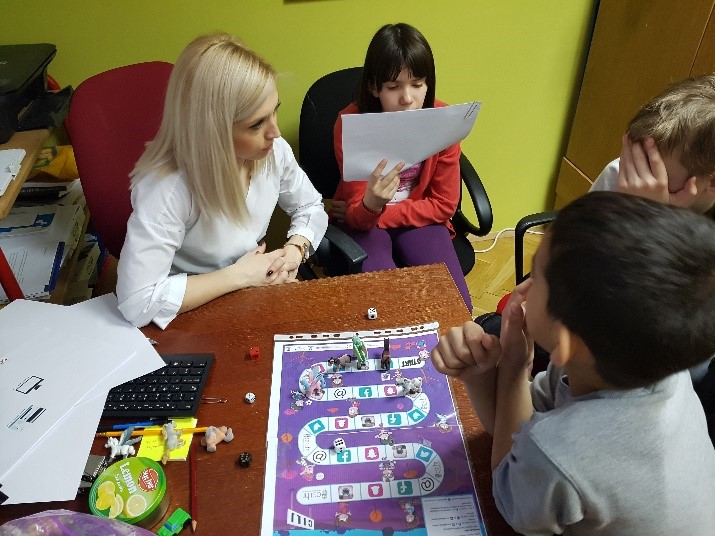 Osim toga, igrali smo vrlo zanimljivu i zabavnu društvenu igru „Sigurni na internetu“ kroz koju smo primijenili stečena znanja s radionice. Igra se sastojala od različitih tipova aktivnosti ovisno o polju na koje stanu: brzo crtanje, davanje savjeta za sigurno korištenje interneta i odgovaranje na različita pitanja o ponašanju na internetu.