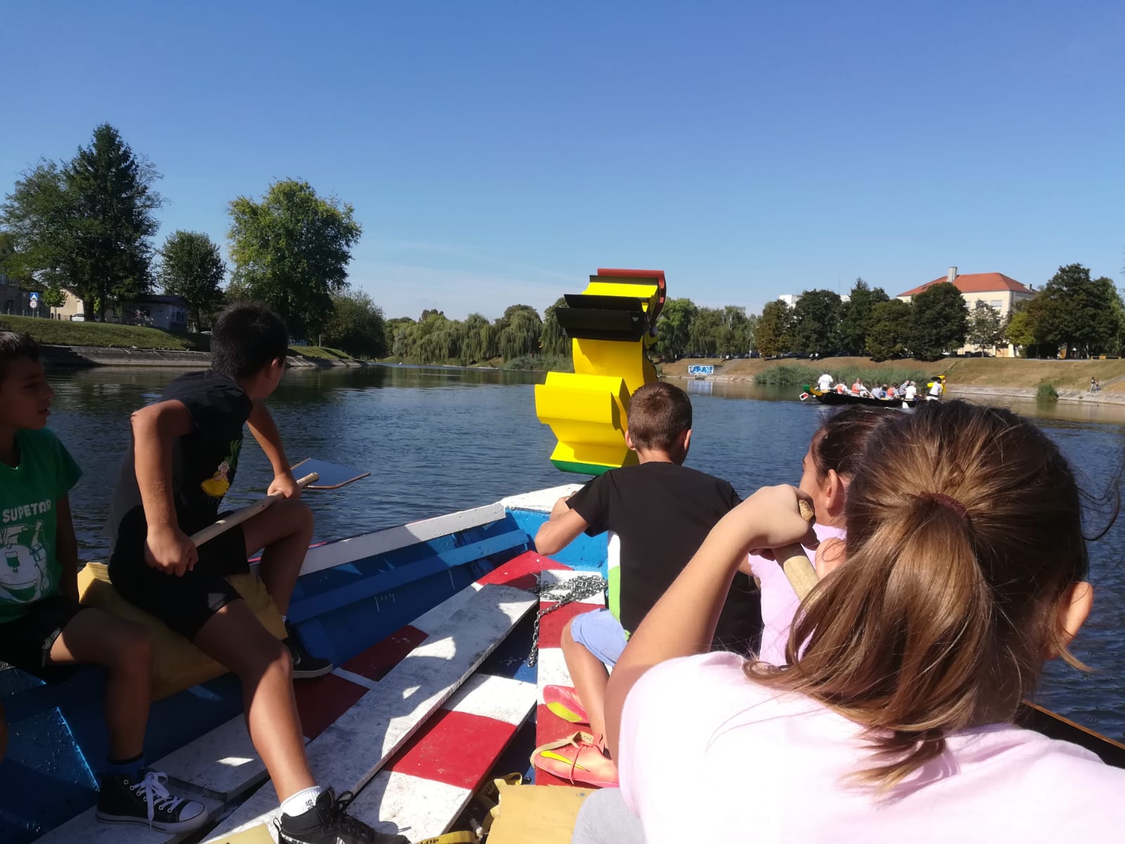 Udruga Vinkovački lađari već treću godinu povodom Vinkovačkih jeseni organizira utrke čamcima po Bosutu, a ove godine je bila specifična po tome što je uz regatu bila organizirana i trka čamaca s kineskim zmajevima. Mi smo se natjecali u maratonu lađa osoba s invaliditetom uz ostale ekipe iz Bubamare, Male Terezije i O.Š. A.G. Matoš iz Vinkovaca te O.Š. I. Matoš iz Vukovara i osvojili 3.mjesto i medalje! Uz veslanje, pažnju su nam plijenile i zanimljive radionice– likovna i radionica izrade maketa zmajeva i kineskih čamaca. Ugodno i zabavno smo proveli ovo subotnje prijepodne!